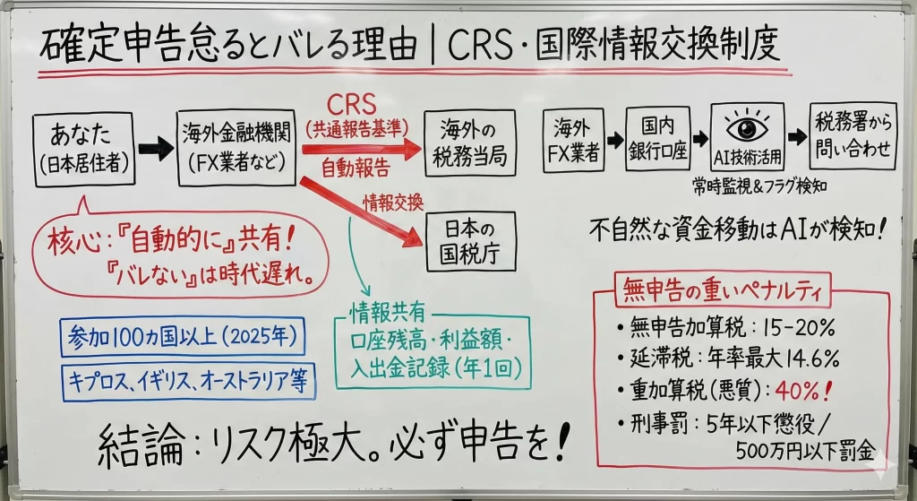 日本は経済協力開発機構(OECD)の共通報告基準(CRS)に参加しており、一定額以上の海外金融口座情報は自動的に日本の税務当局に報告される仕組みが整っています。