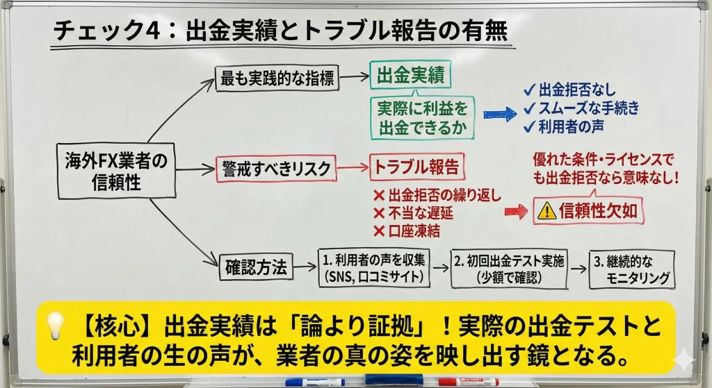 実際に、過去には日本から突然撤退した海外FX業者や、理由なく口座を凍結した事例も報告されています。