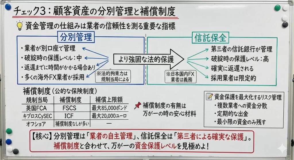 業者が独自に分別管理や信託保全を実施していると謳っていても、それは業者の自主的な取り組みに過ぎず、法的な強制力はありません。