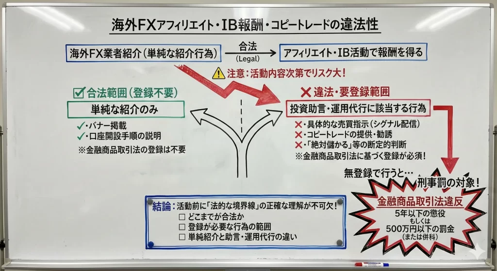 さらに、アフィリエイトやコピートレードなど周辺行為の合法性、今後の規制動向と対策も詳しく紹介します。