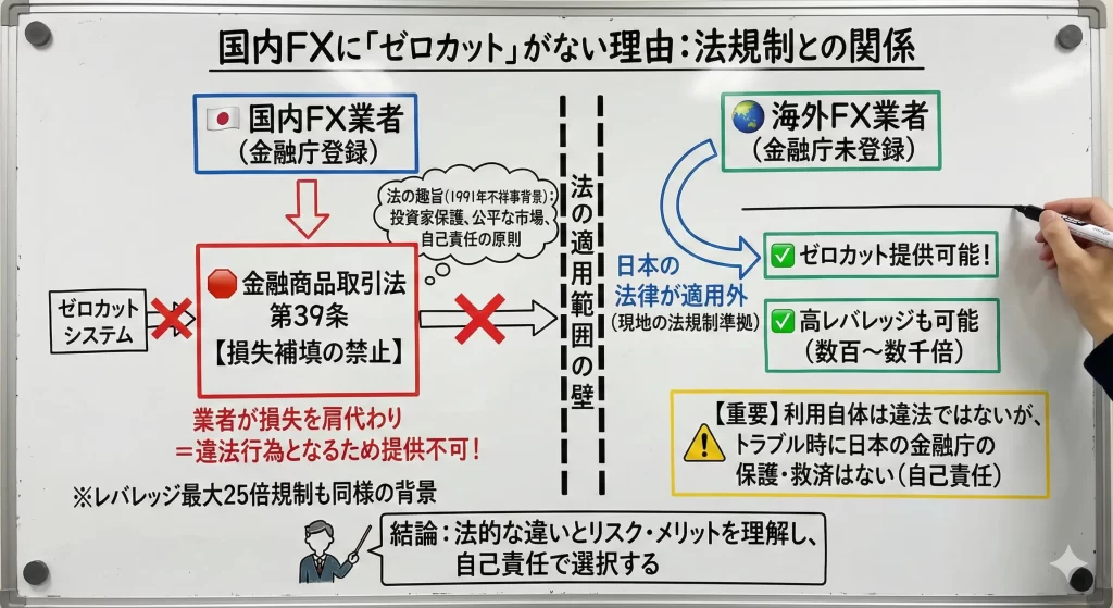 国内FX業者を利用する場合、金融商品取引法に基づく投資者保護の仕組みが適用されます。