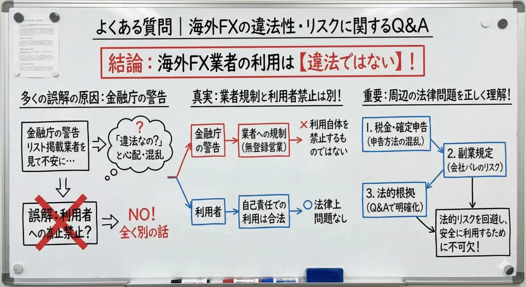 「海外FXは違法なのか?」という疑問は、多くのトレーダーが最初に抱く不安です。