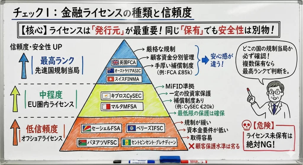 💡 編集部より:ライセンスの「格」によって信頼性が大きく異なります。複数ライセンスを保有している業者は透明性が高い傾向にあります。