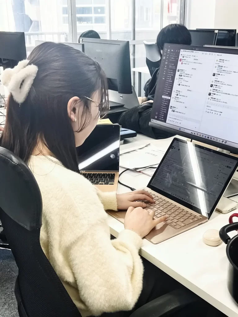 社員さんが「これについて考え送ってみて」といった意思表示の機会を多く与えくれたおかげで、自分の意見に対してフィードバックを積極的にもらいに行けるようになりました。
