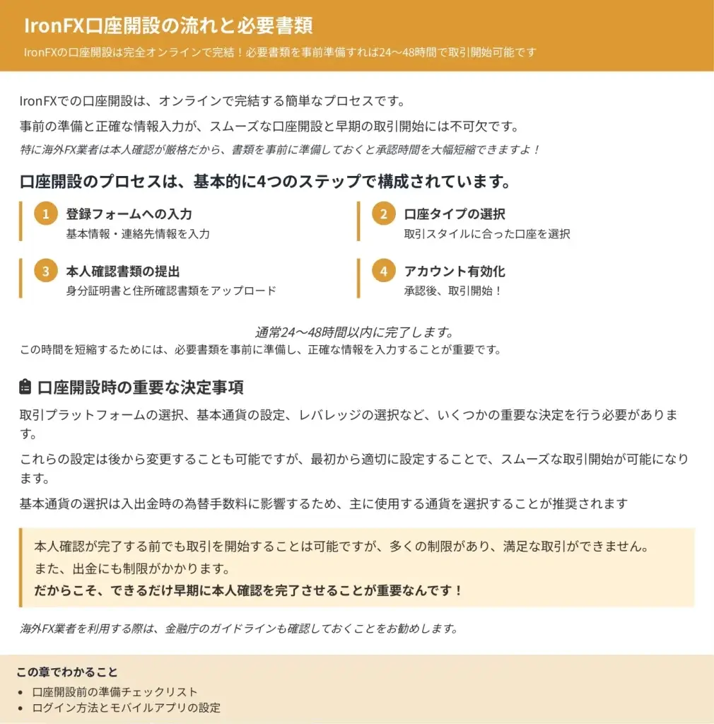ここまで、IronFXの各口座タイプの特徴、ボーナスプログラム、口座開設方法、入出金システム、そして実際の利用者の評判について詳しく解説してきました。