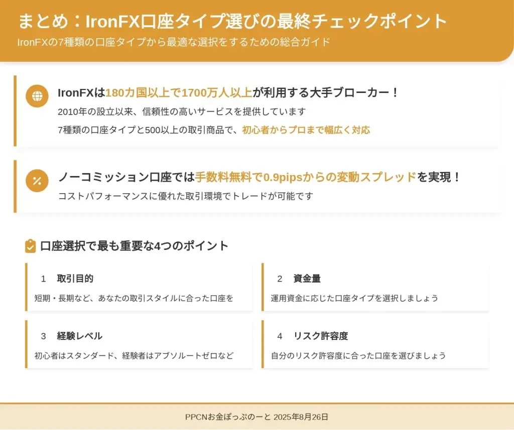 まとめ:IronFX口座タイプ選びの最終チェックポイント
