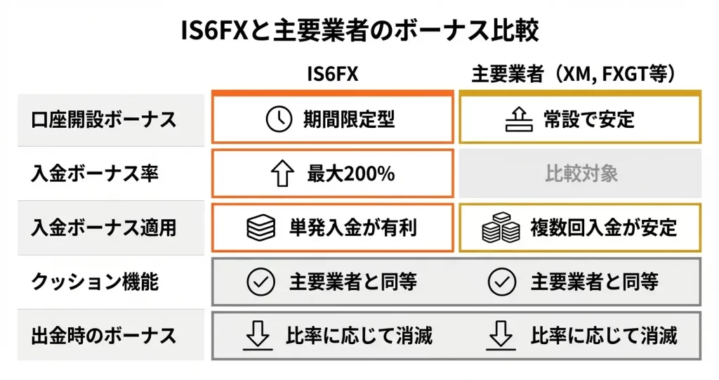 IS6FXのボーナス全種類と受取条件を解説、他社比較と選び方のポイント