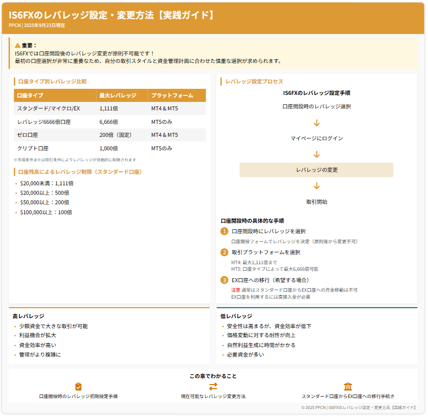 この記事を読めば、IS6FXのレバレッジシステムを完全に理解し、あなたの資金量や取引スタイルに最適な口座選びができるようになります。