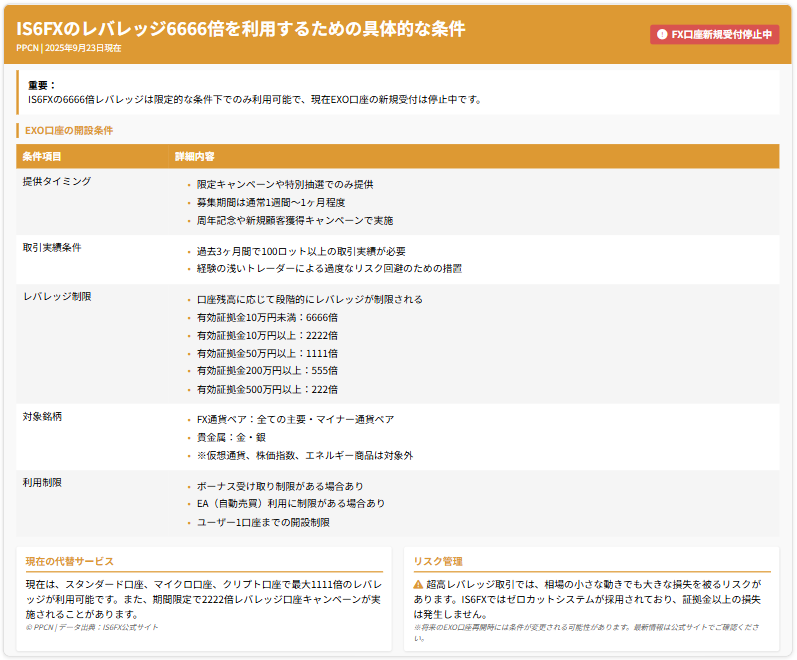 2024年現在、新規受付は停止されていますが、その取引条件と制限事項を理解することは、IS6FXのレバレッジシステムを深く理解する上で重要です。