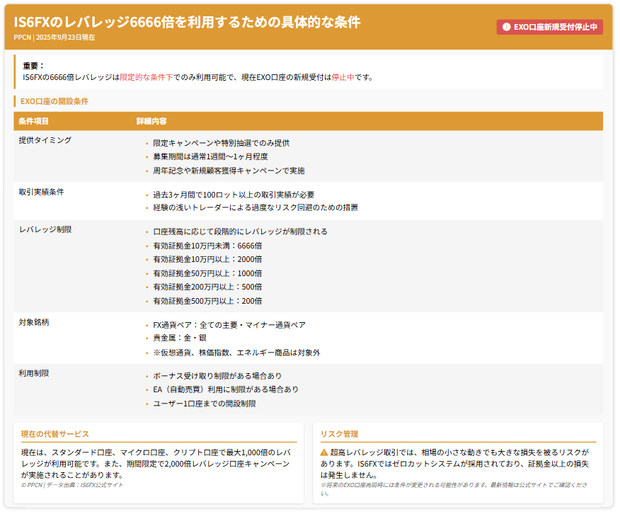 現在、6666倍レバレッジのEX口座は新規受付停止中ですが、将来の再開に備えて条件を把握しておくことは重要ですね!
