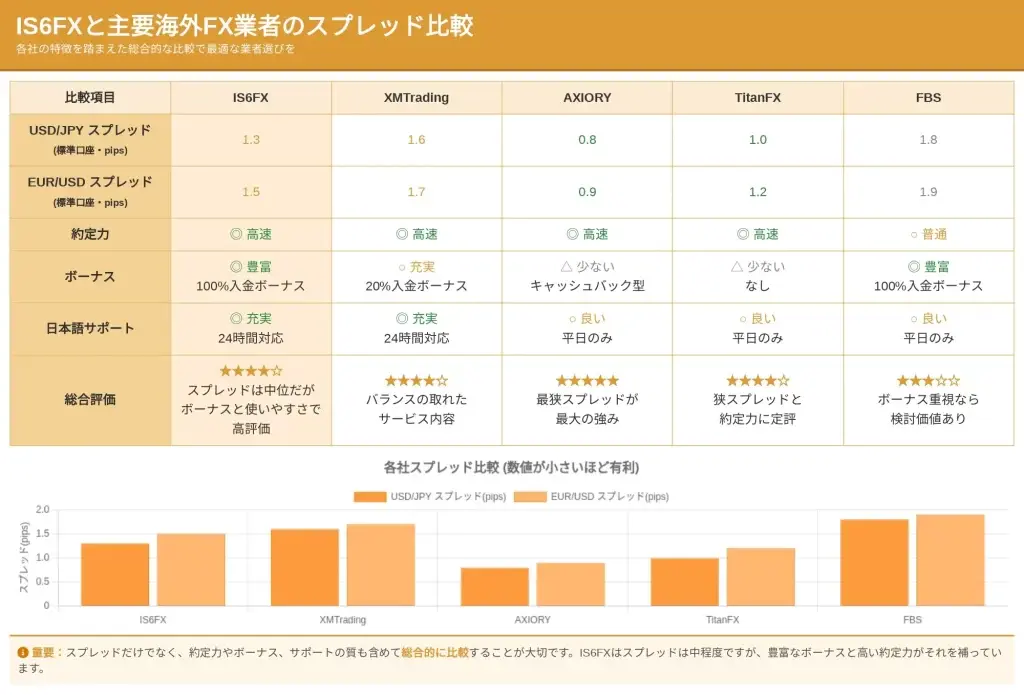 本記事では、IS6FXの主要通貨ペアやゴールド(XAUUSD)の実測スプレッドデータを公開し、XMやAXIORYなどの人気海外FX業者との詳細比較を行います。