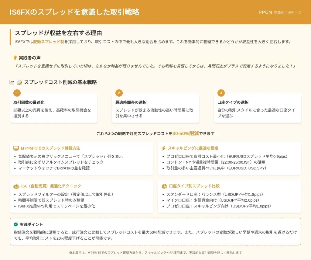この記事を読めば、IS6FXのスプレッドの実態を正確に把握し、あなたの取引スタイルに最適な口座選択ができるようになります。また、スプレッドコストを最小化する具体的な戦略も身につけることができるでしょう。