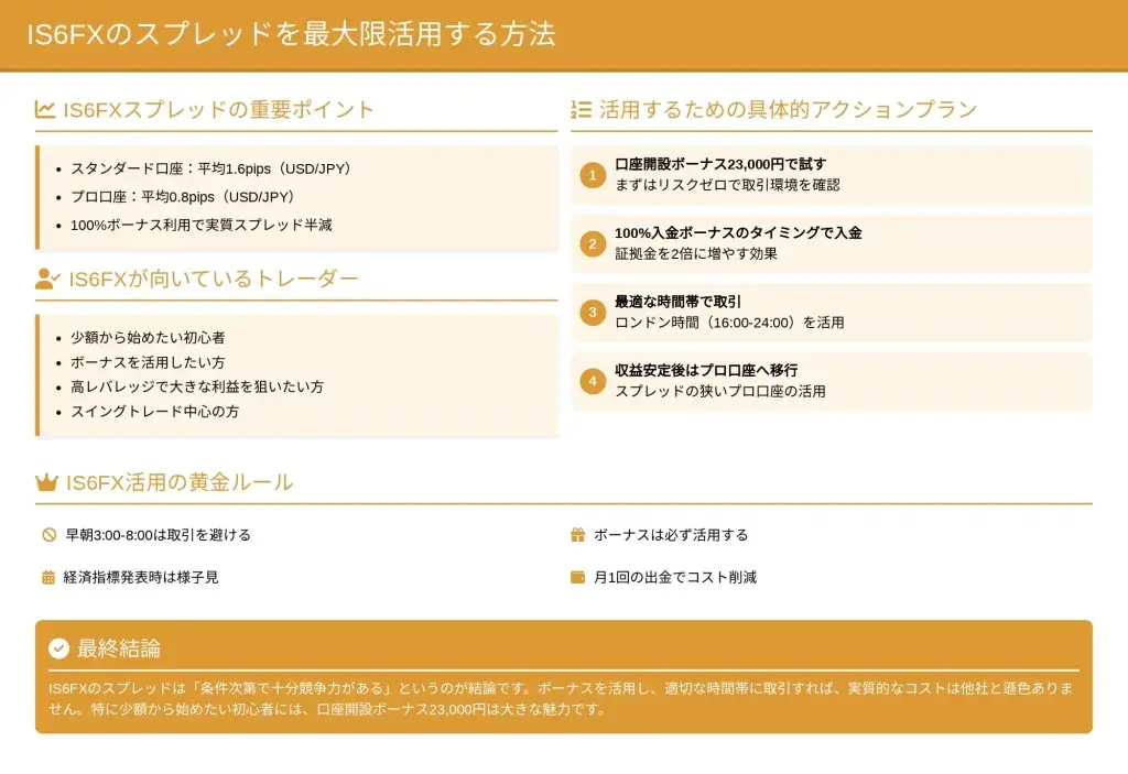 まとめ:IS6FXのスプレッドを最大限活用する方法