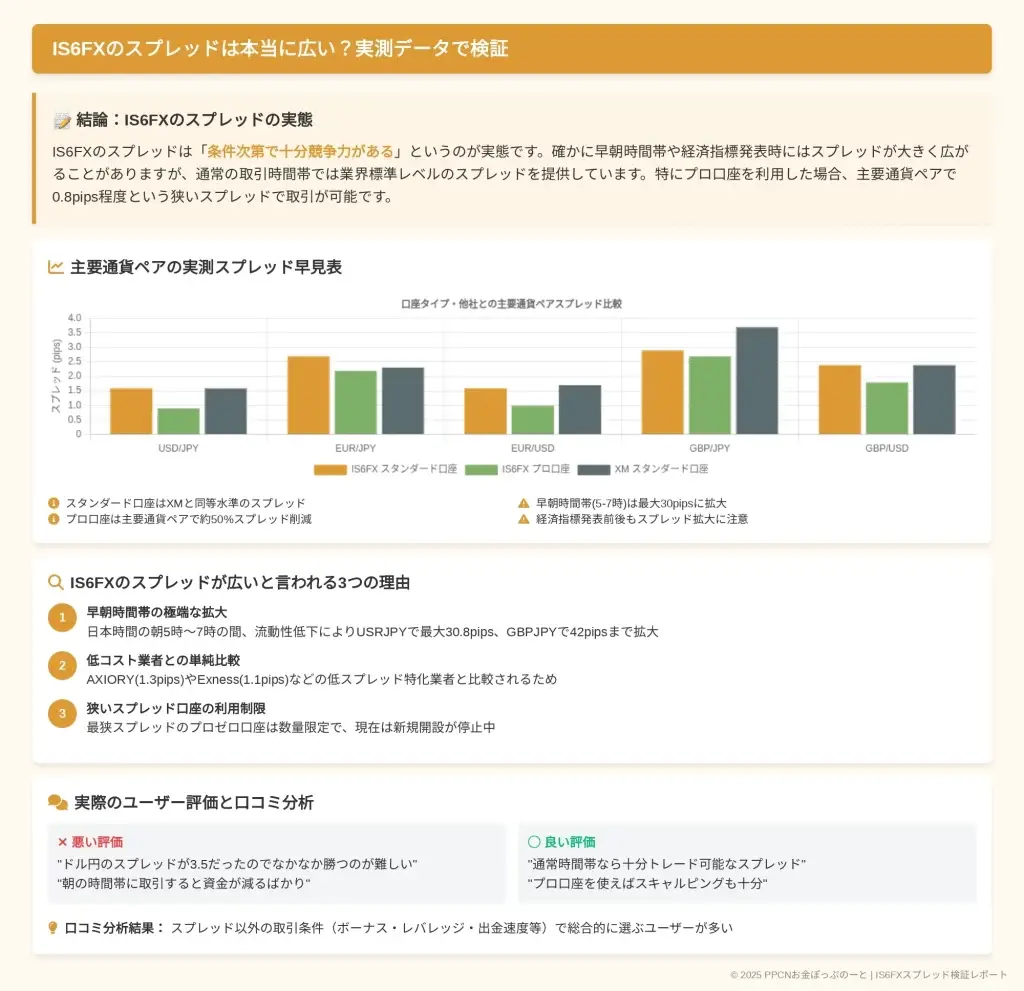 IS6FXの主要通貨ペアにおける実測スプレッドを以下に詳しく解説します。