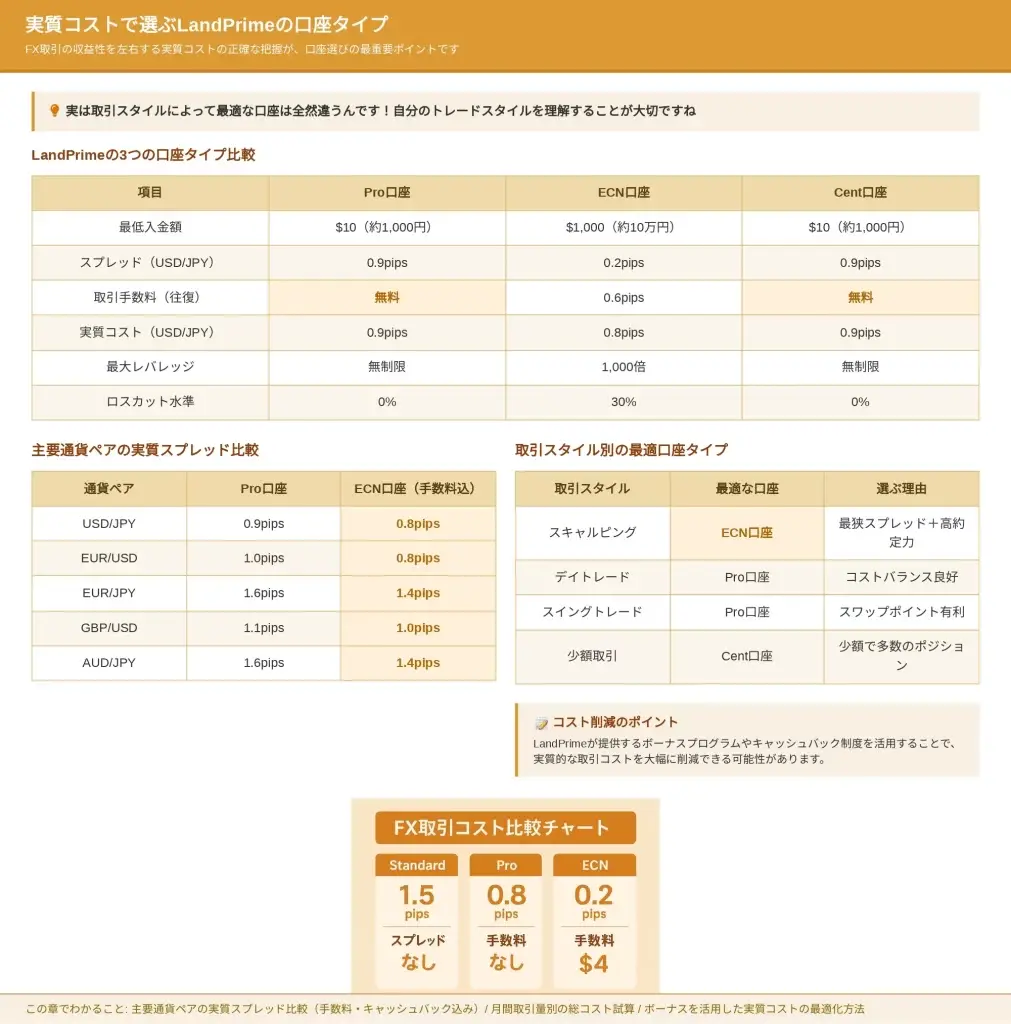 この記事では、LandPrimeの全口座タイプの詳細スペック比較表から、トレードスタイル別の最適な選択方法、実質スプレッドの計算例、さらには他社との比較優位性まで、口座選択に必要な情報を網羅的に解説します。