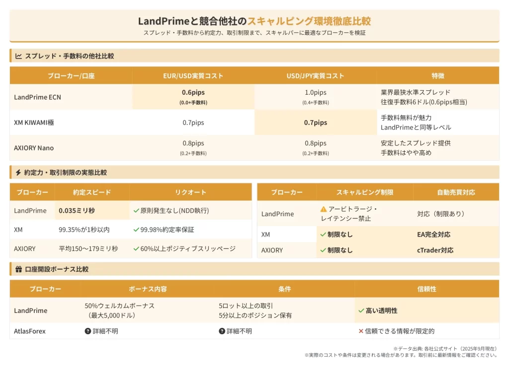 LandPrimeと競合他社のスキャルピング環境徹底比較