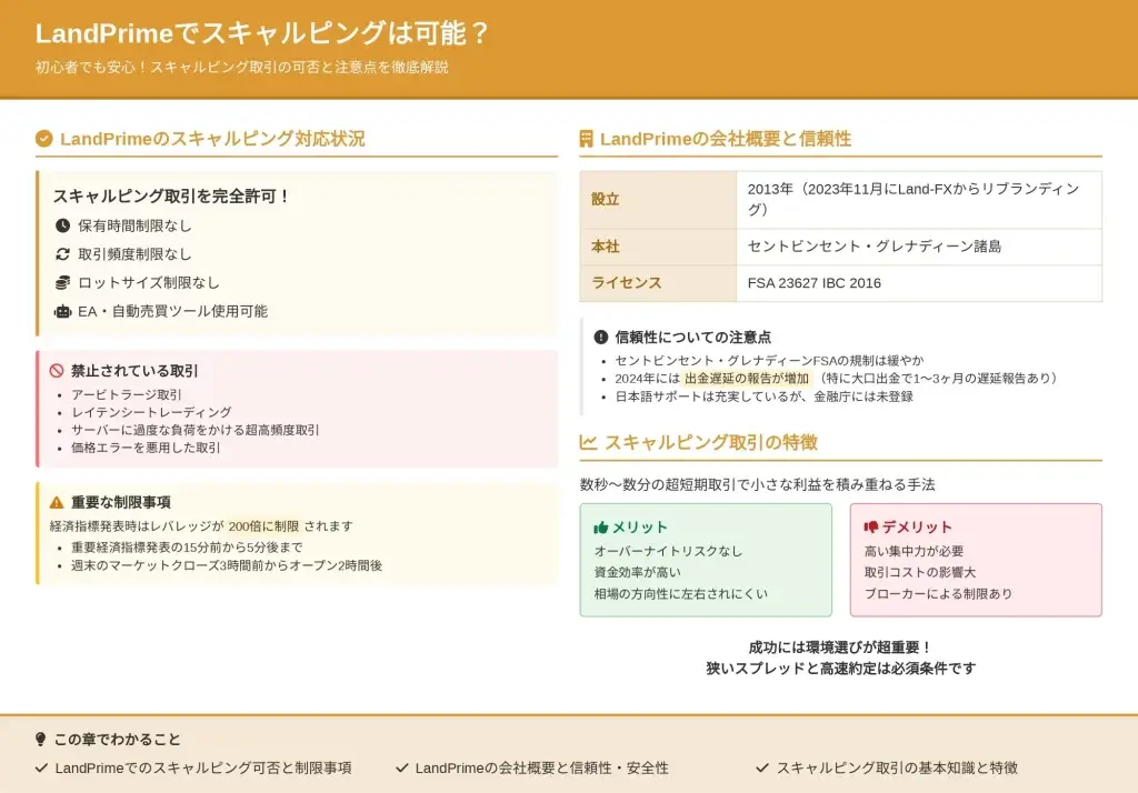 この章では、LandPrimeのスキャルピング対応状況から会社の信頼性まで、基本情報を詳しく解説します。