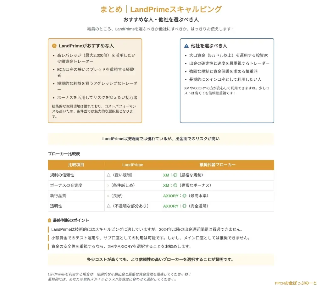 まとめ|LandPrimeスキャルピングがおすすめな人・他社を選ぶべき人