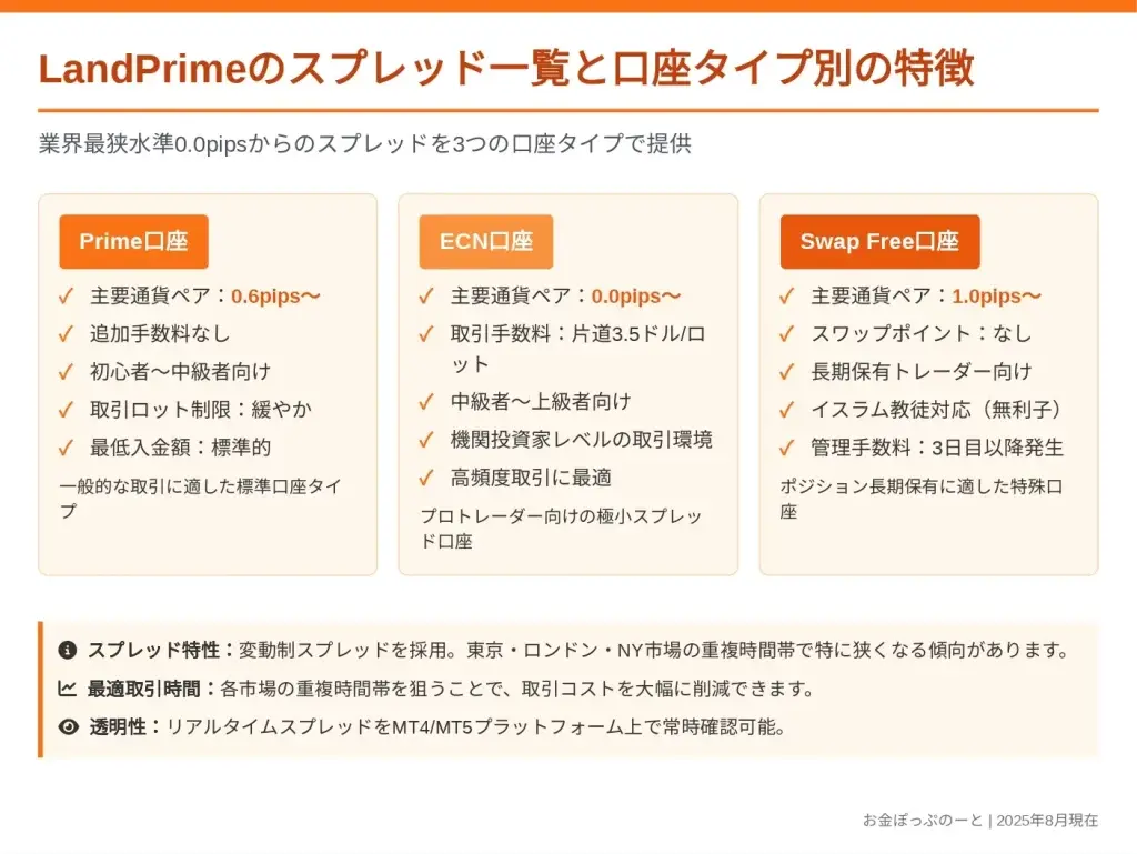 LandPrimeのスプレッド一覧と口座タイプ別の特徴