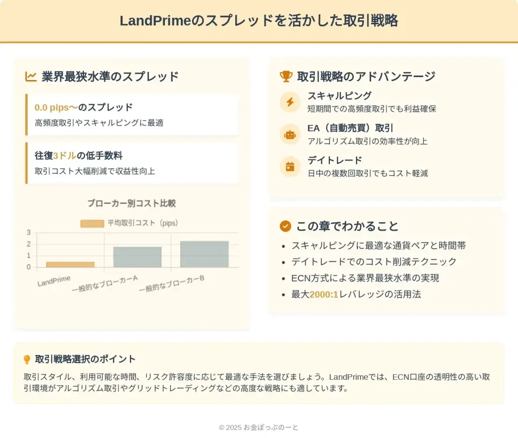 取引戦略の面では、LandPrimeの低スプレッド環境はスキャルピングやデイトレードに特に適しています。