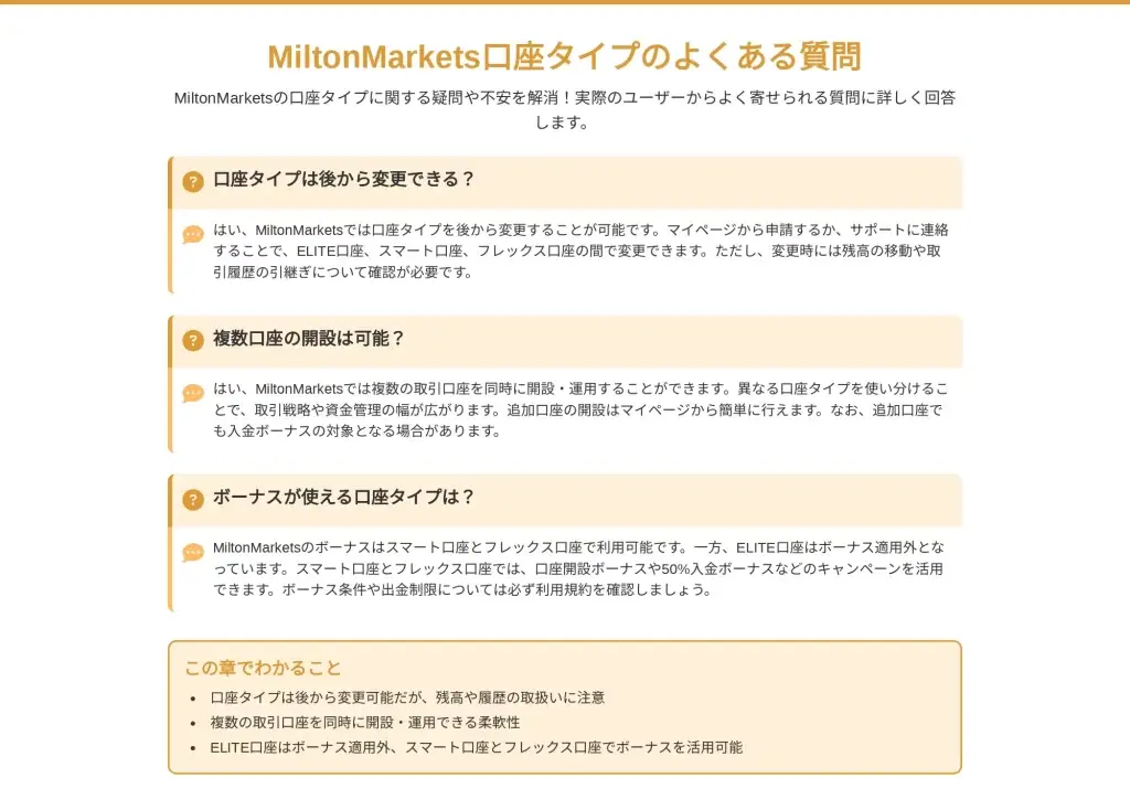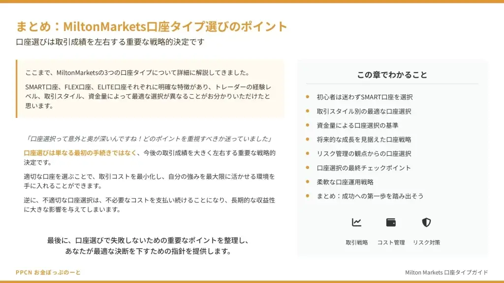 まとめ:MiltonMarkets口座タイプ選びのポイント