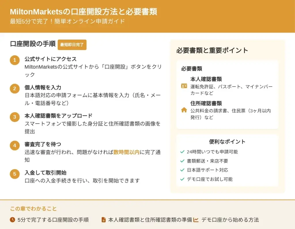 この記事を読めば、あなたの投資スタイルと資金量に最適なMiltonMarkets口座タイプが明確になり、迷うことなく口座開設を進められるようになります。