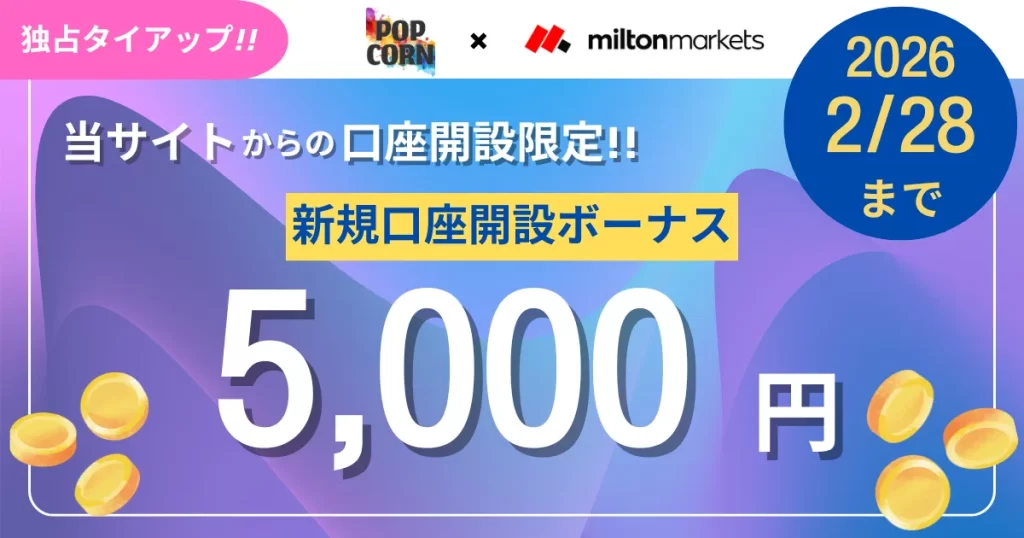 のMiltonMarketsをまずはお得に体験できる、口座開設ボーナスを実施中!