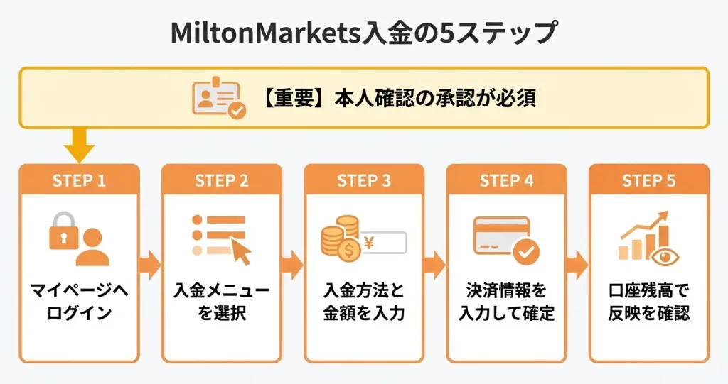 MiltonMarketsへの入金は、マイページから5つのステップで完了できる仕組みになっています。