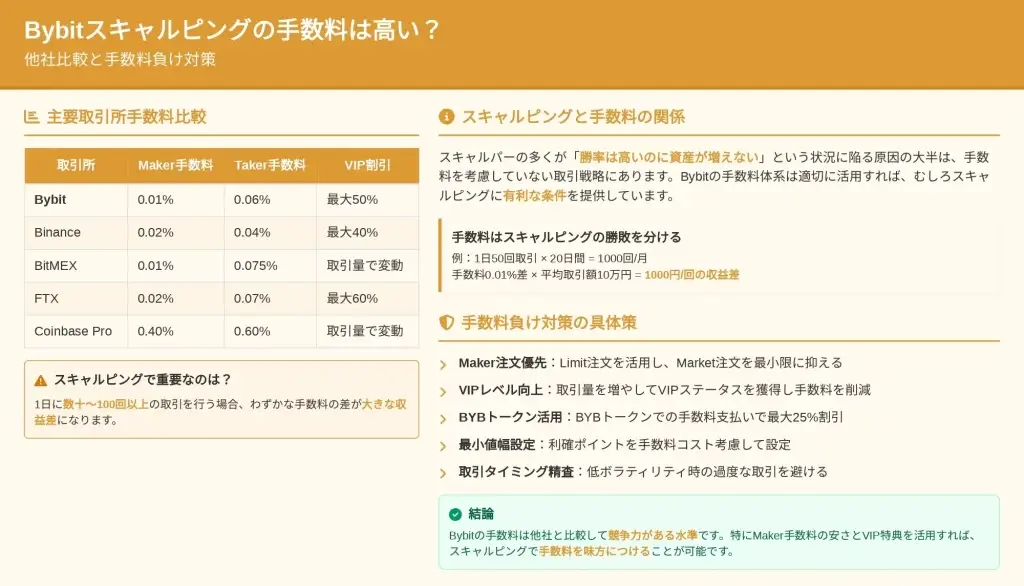 Bybitスキャルピングの手数料は高い?他社比較と手数料負け対策