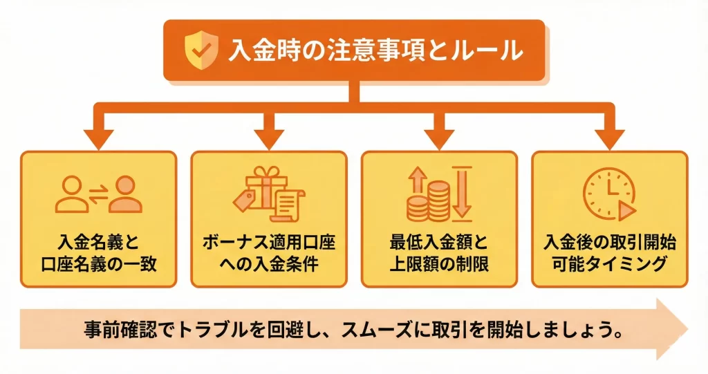 このセクションでは、入金後すぐに取引を始められるよう、確認すべき項目と設定手順を順番に解説します。