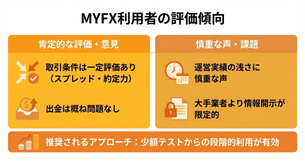 MYFXMarketsを検討する上で、実際に利用している人の声は重要な判断材料となります。