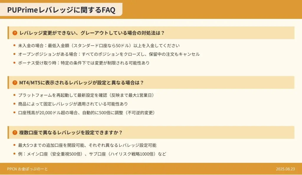 PUPrimeレバレッジに関するよくある質問(FAQ)