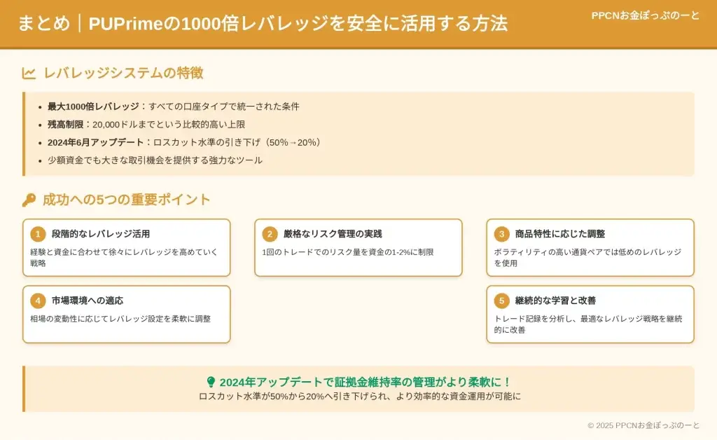まとめ|PUPrimeの1000倍レバレッジを安全に活用する方法
