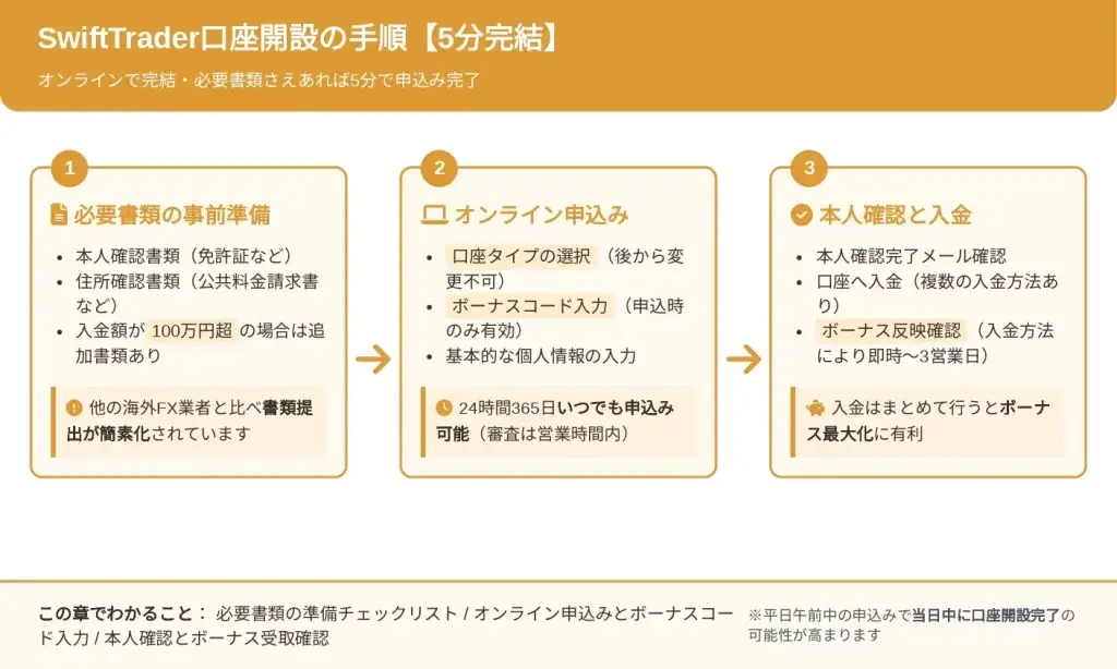 この記事を読めば、SwiftTraderで最も有利な口座タイプを確信を持って選択でき、豪華ボーナスを最大限活用した効率的なトレードを今すぐ始められるようになります。