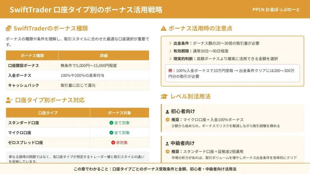 SwiftTrader 口座タイプ別のボーナス活用戦略