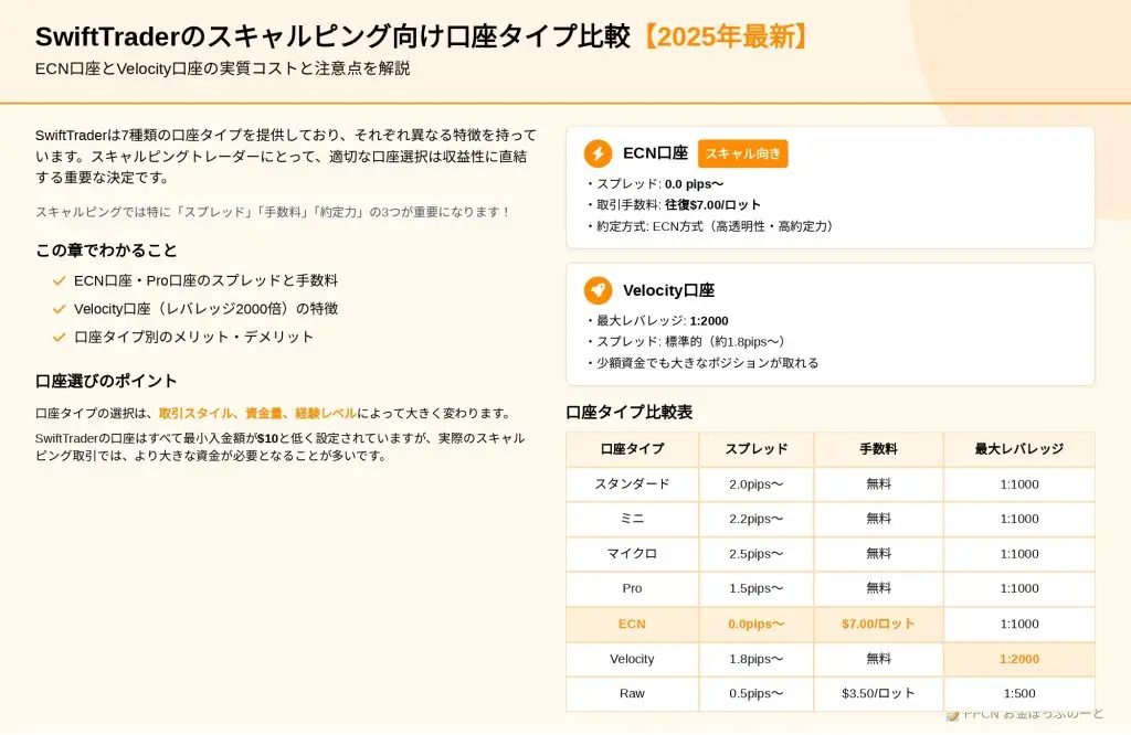 SwiftTraderのスキャルピング向け口座タイプ比較【2025年最新】