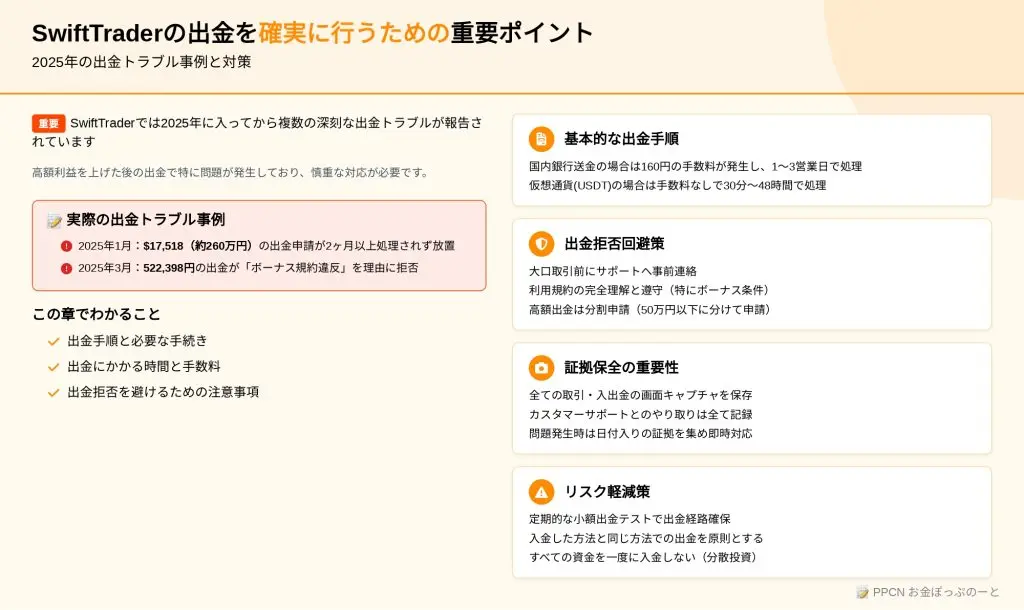 SwiftTraderでの出金拒否は深刻な問題となっており、以下の点に特に注意が必要です。