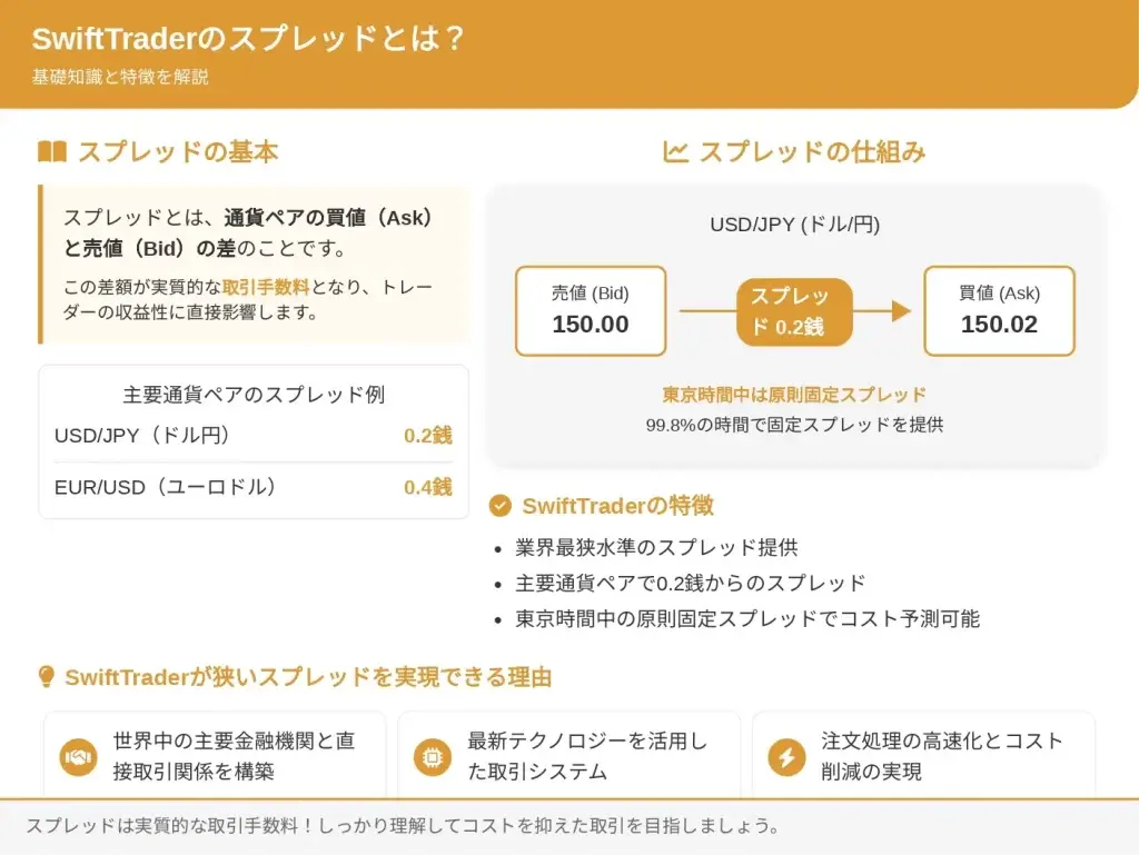 本セクションでは、SwiftTraderのスプレッドシステムの基本的な仕組みから、他社にはない独自の特徴まで、詳しく解説していきます。