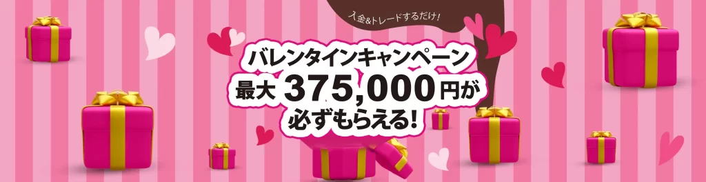| 2月限定 バレンタインキャンペーン | 入金&取引量に応じて最大6段階のキャッシュバック ※エントリー必須 | 最大375,000円 | エントリー: 2026年1月30日~2月28日 キャンペーン: 2026年2月2日~2年28日 |