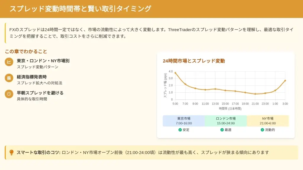 最適な取引時間帯を選ぶことで、スプレッドコストを20-30%削減できます。