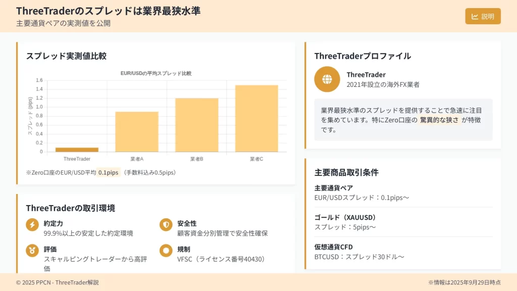 【2025年最新版】ThreeTraderスプレッド完全ガイド|業界最狭水準の実測値と他社比較、口座選びのポイントを徹底解説
