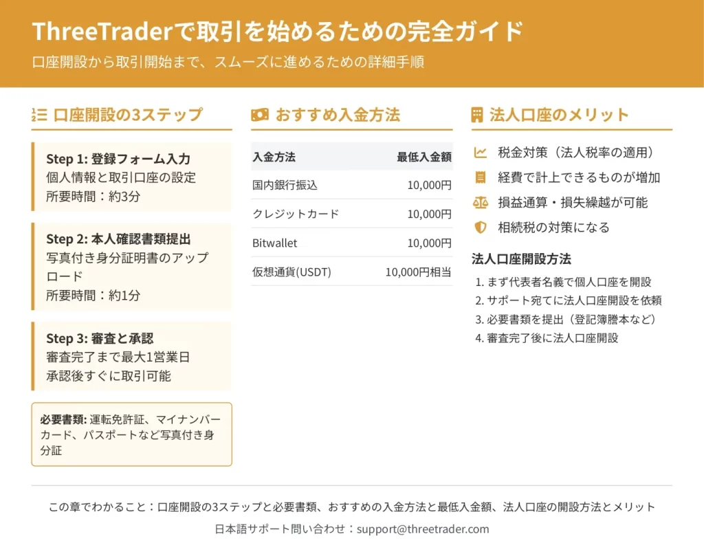 まずは少額から始め、ThreeTraderの取引環境を実際に体験してみることをおすすめします。狭いスプレッドがもたらす取引の快適さと、コスト削減による収益改善を、ぜひ実感してください!