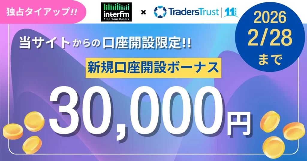 のTradersTrustをまずはお得に体験できる、口座開設ボーナスを実施中!