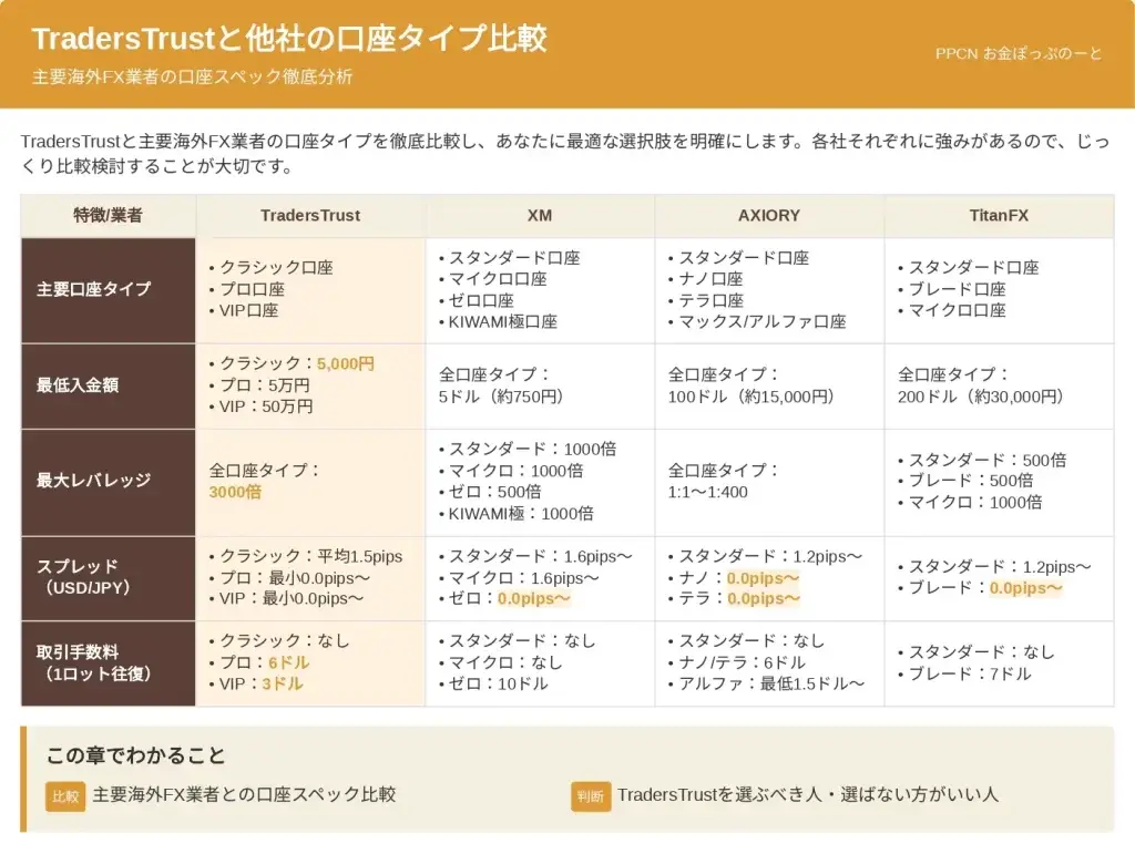さらに主要海外FX業者との比較データも交えて、TradersTrustを選ぶべき人・選ばない方がいい人まで明確にお伝えします。