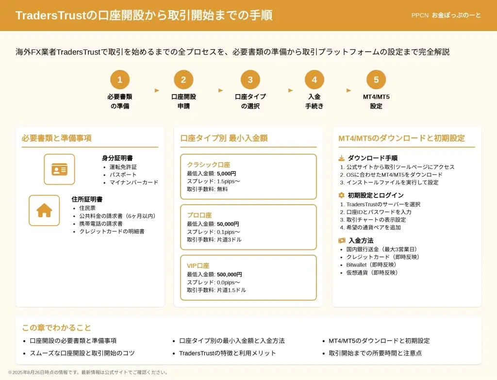 この記事では、TradersTrustの全口座タイプの詳細スペック比較表、取引スタイル別の最適な選び方、2025年最新のボーナス情報、口座開設から取引開始の手順まで解説します。
