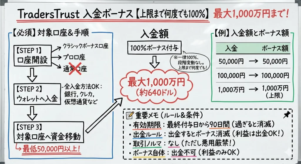📝 TradersTrustボーナス活用のポイント
