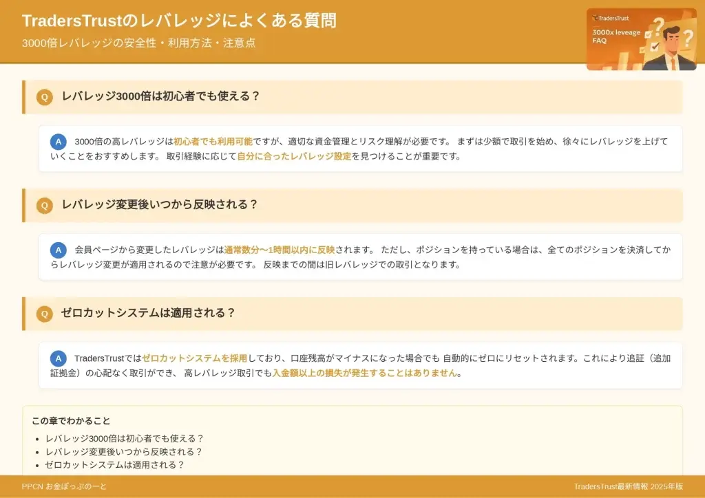 TradersTrustの3000倍レバレッジについては、多くのトレーダーから様々な質問が寄せられています。