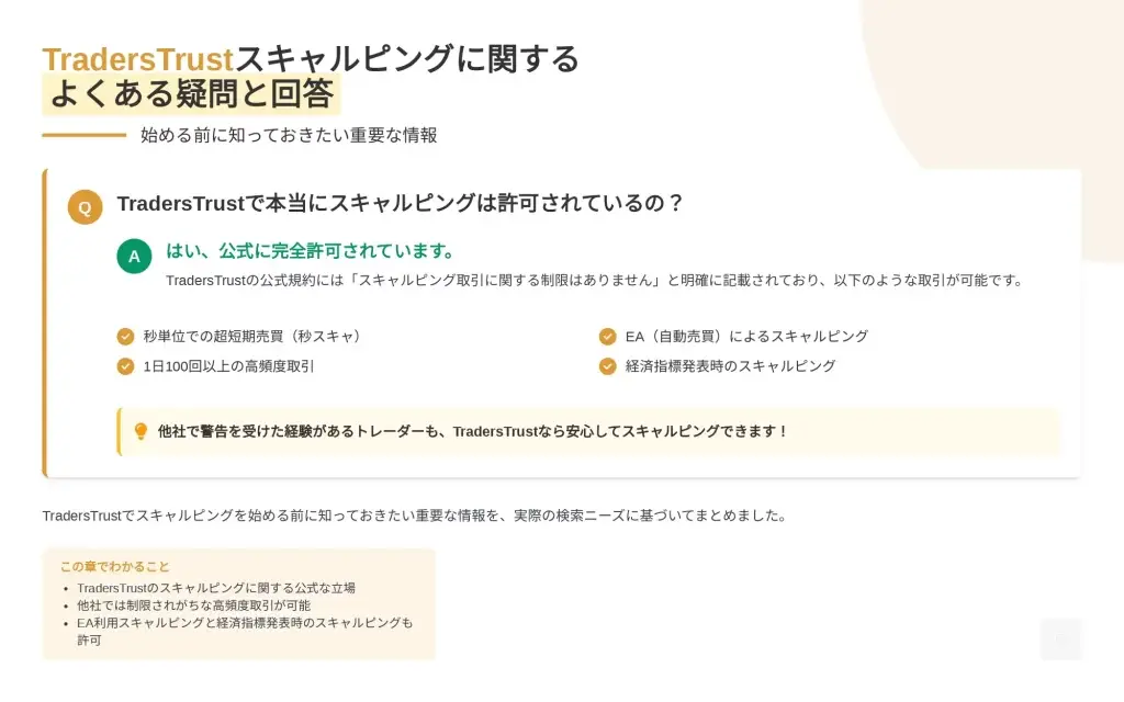 TradersTrustスキャルピングに関するよくある疑問と回答