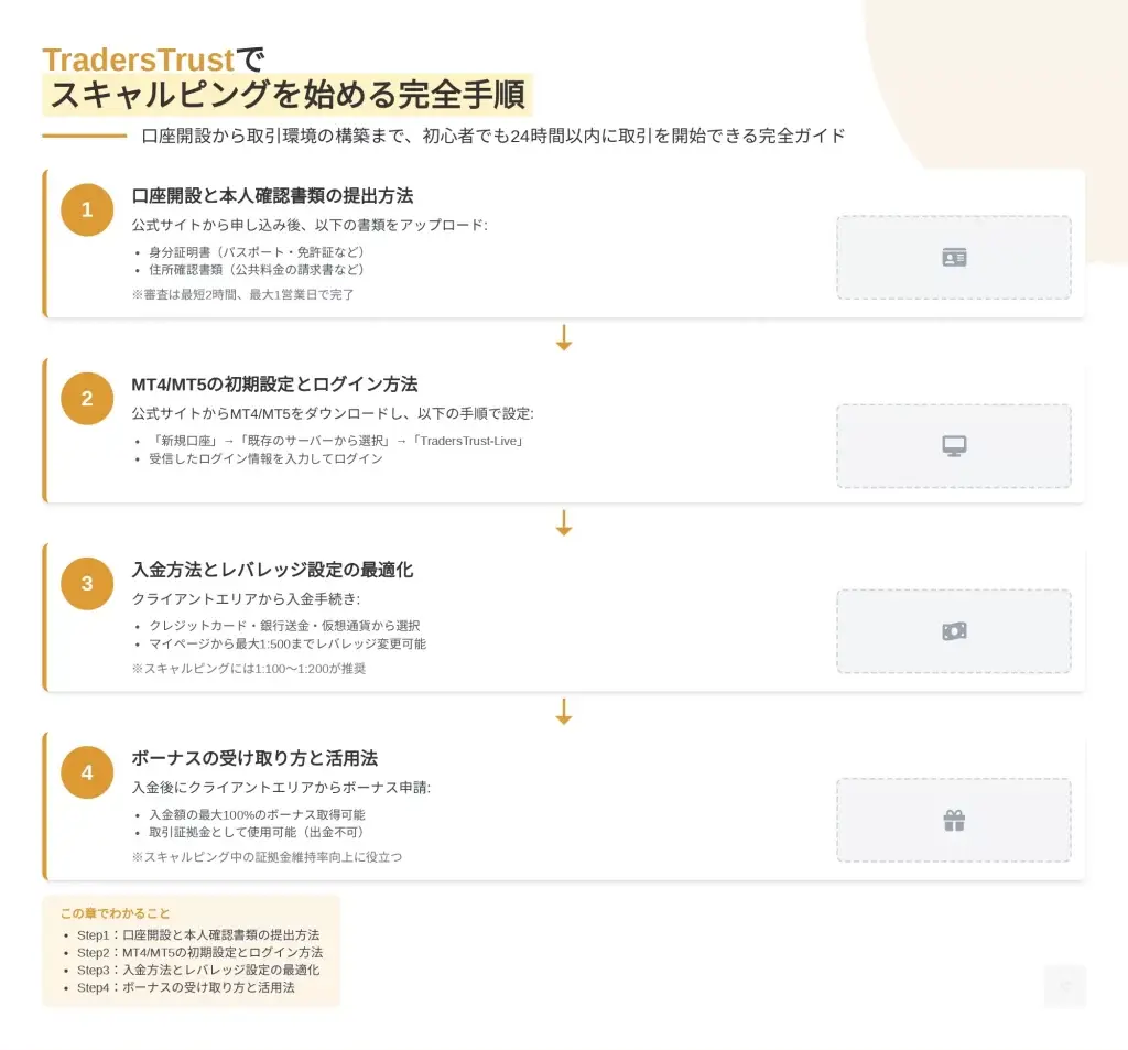 最後に、記事全体の要点を整理し、TradersTrustでスキャルピングを始めるための最終確認を行いましょう。