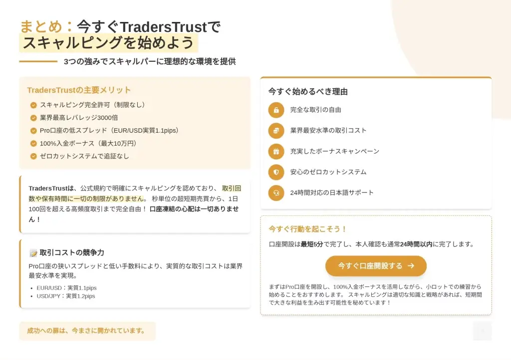 まとめ:今すぐTradersTrustでスキャルピングを始めよう